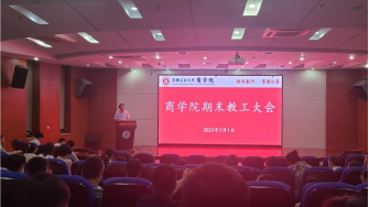 院党委书记洪功翔在总结讲话中,简要梳理了上半年取得的成绩,对近年来的工作表示肯定,同时指出今后继续努力的方向和“十四五”规划的重点目标。对于暑期安排,他提出五点建议和要求:一是要自信一点,老师们要在项目申报、论文写作、课堂教学、科学研究中更加自信、积极,勇于争先创优;二是要当心一点,暑期外出参加学术会议、返回家乡等要加强防护,当心细心,注意安全;三是多辅导一点,要珍惜假期陪伴子女的宝贵时间,对孩子的教育多辅导、多上心,为下一代的素质提升做出贡献;四是家务多做一点,家和万事兴,在家做好子女、父母、丈夫或妻子的角色,增进家庭和谐美满;五是多锻炼一点,生活要健康规律,积极锻炼,提高身体素质,以更加饱满的热情和昂扬的姿态迎接新学期,以新的更大进步迎接党的二十大召开。
