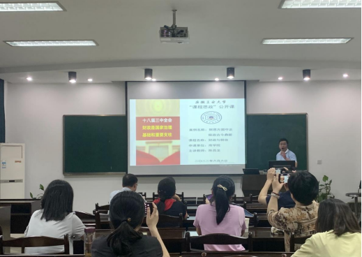 开展了“课程思政”公开课教学展示活动。王锴、陈昌龙两位主讲教师分别以课程思政示范课程《财务管理学》和《财务与税收》进行了展示。校督导组专家董武清以及院督导组专家组成员参加了此次活动,院课程思政示范课教师以及部分青年教师进行了观摩学习,公开课由副院长周世军主持。