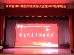 “礼赞百年铸初心,筑梦青春踏征程”2021年度学生表彰大会暨2022新年晚会在秀山校区大学生活动中心隆重举行。院党委书记洪功翔,党委副书记、副院长张虎,副院长周世军、成祖松、吴金南,博彩通