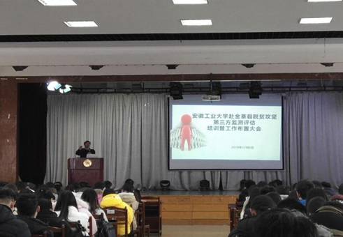 在秀山校区老大学生活动中心召开安徽省脱贫攻坚第三方监测评估动员暨培训大会,院党委书记黄国才,副书记、副院长张虎,赴金寨县开展监测评估的师生参加了此次大会,会议由张虎主持。