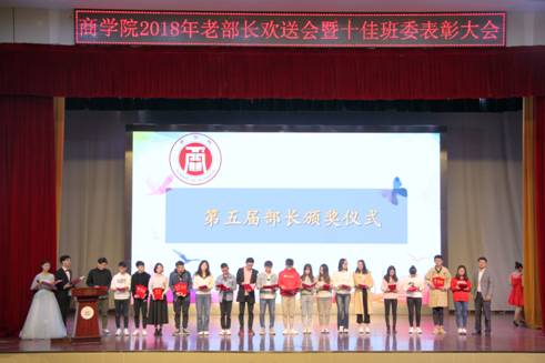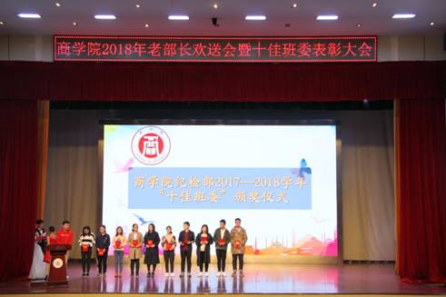 在简洁的活动背景介绍之后,主持人宣读了十佳班委的获奖名单。受表彰的班委们怀着激动而自豪的心情,在热烈的掌声中,有序上台领奖。一阵阵热烈的掌声,一份份鲜红的荣誉证书,都是对他们过去一年中勤勤恳恳的付出的充分肯定。随后,十佳班委代表黄河在讲话中介绍了过去一年中十佳班委为班级和博彩通