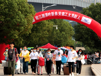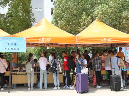 2020级新生陆续抵达秀山校区北门口。按照博彩通