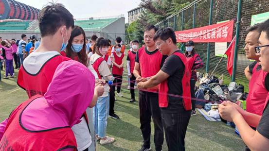 团队成员手拉绳子,通过配合协作使在迷宫中行走的圆球安全的从起点到达终点,在比赛中,每组学员通力合作,共同研究战略战术,明确每个队员的任务,既要顾及个人任务的完成,又要考虑整体利益,才能在最短的时间内取得成功。