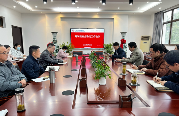 于汇文楼B304召开院安全稳定工作会议。院领导班子成员、党委委员、系(室)主任、党支部书记、科级干部、全体辅导员参加会议。会议由院党委副书记、纪委书记、副院长张虎主持。
