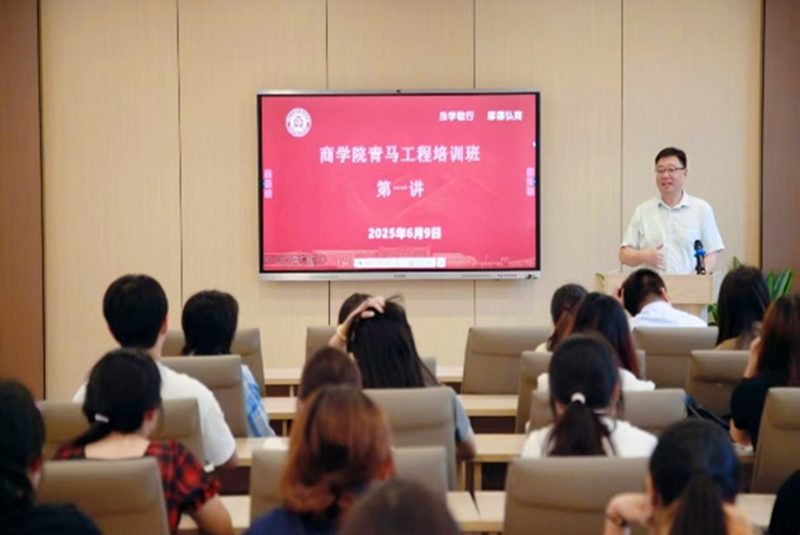 于秀山校区汇文楼B204教室举办2025年度“青马工程”培训班开班仪式,院党委书记杜飞,院党委副书记、纪委书记、副院长蒋磊,院团委副书记刘在春、王天蓝、张舒及全体青马学员参会,开班仪式由刘在春主持。