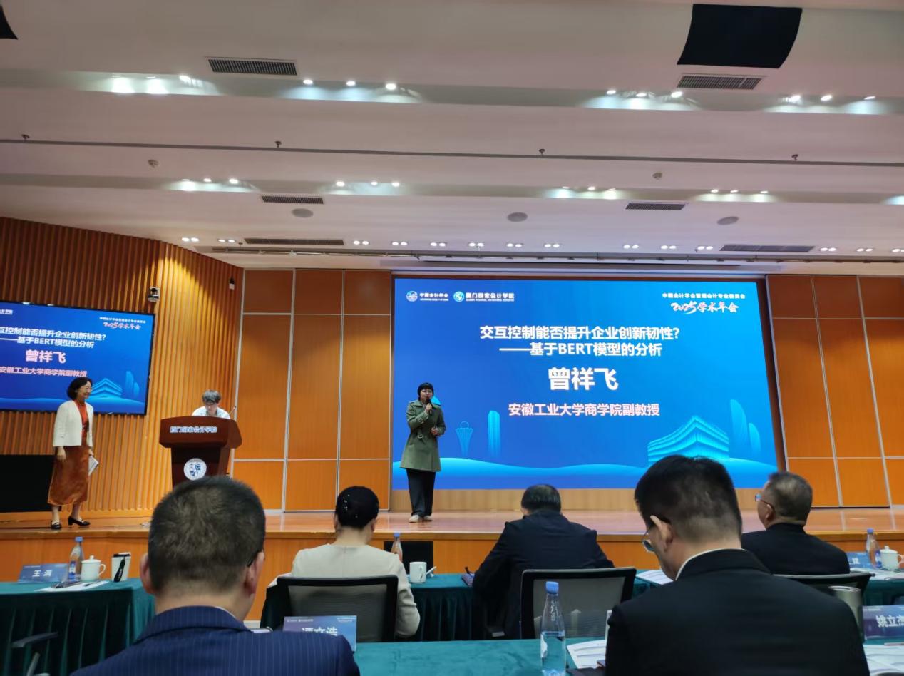 在专题报告环节,曾祥飞作了题为“交互控制能否提升创新韧性?——基于BERT模型的分析”的论文报告。该研究创新性地运用自然语言处理中的BERT模型构建交互控制的测度指标,实证检验了交互控制对企业创新韧性的影响机制。报告内容方法新颖、论证扎实,兼具理论前沿性与实践启发性,得到了与会学者的广泛关注与积极评价。经大会评审,该论文从众多投稿中脱颖而出,荣获本次年会优秀论文一等奖。