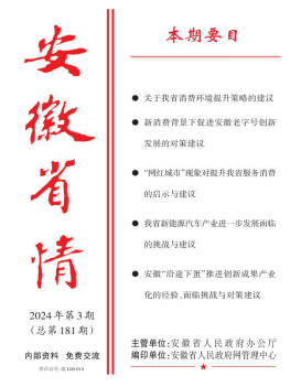 江小国教授等撰写的《我省新能源汽车产业进一步发展面临的挑战与建议》、吴义东资格教授等撰写的《安徽“沿途下蛋”推进创新成果产业化的经验、面临挑战与对策建议》和剧晓红博士撰写的《提升安徽专精特新企业活力的对策建议》三篇资政文章,被安徽省人民政府办公厅内刊《安徽省情》(2024年第3期)“专家建言”专栏整栏刊载。该内刊主要呈送省委、省人大、省政府、省政协主要领导以及省委常委、省政府副省长等,供决策参考。