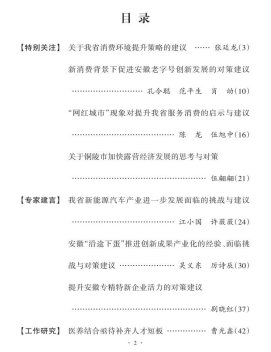 江小国等在资政建议中提出,当前我省新能源汽车产业在关键技术、生产成本、使用环境、商业模式、全球竞争等方面依然存在问题和挑战,需要加强新能源汽车产业链协同创新,提升产业链配套能力,加快基础设施和智能网联建设,鼓励和支持消费者油车换电车,逐步推行差异化的税收优惠政策。吴义东等在分析当前安徽“沿途下蛋”推进创新成果产业化经验做法和现实挑战的基础上,提出要打通科研成果转化“最后一公里”,持续完善科技需求对接机制,推动各地区、各产业之间深度融合进而垒起科技转化共享“金窝”。剧晓红分析认为,安徽专精特新企业活力亟待提升,围绕专精特新企业发展空间、场景创新服务、创新系统服务、产权保护、对外产能合作、高端要素供给、政策闭环管理等方面提出对策建议。