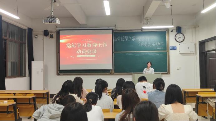 学生第一党支部在教D101召开党纪学习教育动员会议。会议由党支部书记肖梦雨主持。