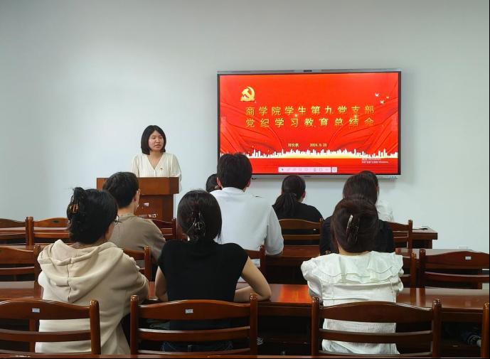 学生第九党支部开展党纪学习教育总结会。本次会议由支部书记刘长秋主持,支部全体党员参加。