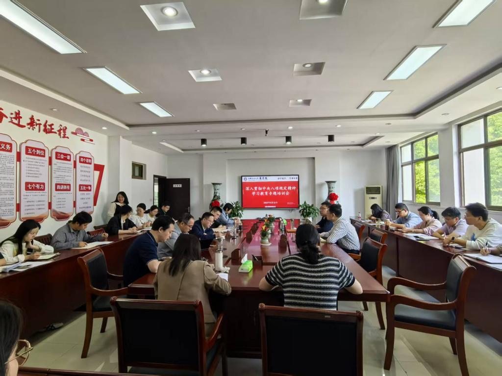 5月12日,博彩通 举办深入贯彻中央八项规定精神学习教育专题培训。院党委书记杜飞作专题党课,院党委副书记、纪委书记、副院长蒋磊作警示教育。博彩通 领导班子成员、年轻干部、关键岗位干部等40余人参加培训。