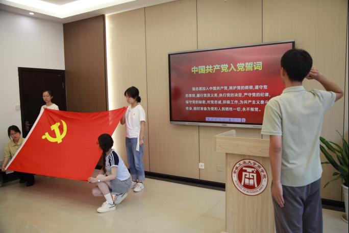 全体毕业生党员面向党旗,庄严肃立,高举右拳,在领誓人的带领下,重温入党誓词。“我志愿加入中国共产党,拥护党的纲领,遵守党的章程……”铿锵有力的誓言在教室中回荡,每一个字都饱含着对党的忠诚与热爱,每一句话都彰显着为共产主义事业奋斗终身的坚定决心。通过重温入党誓词,毕业生党员们再次回顾了入党时的庄严承诺,进一步坚定了理想信念,锚定了初心使命。