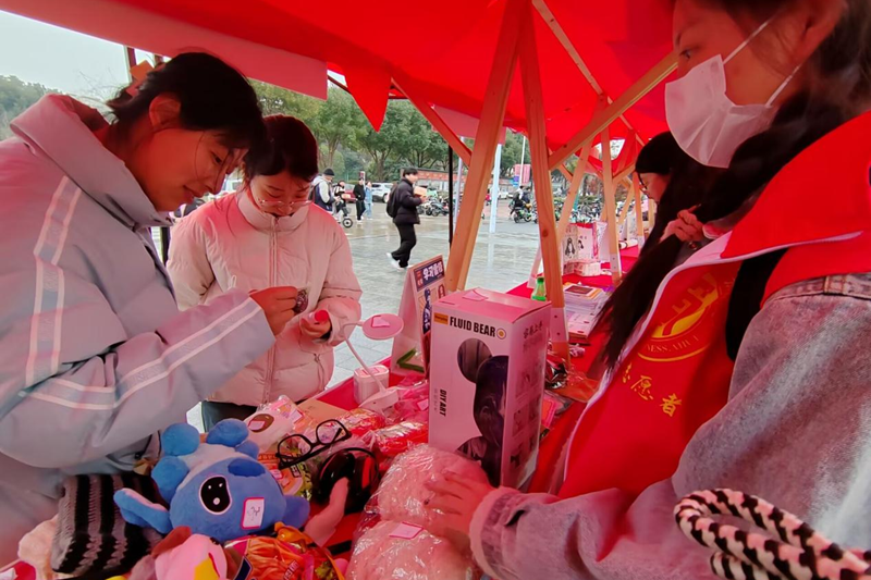 志愿者们热情地招揽着前来选购的顾客,小小的摊位前聚集了许多同学和老师,大家不仅买到了自己需要的物品,更重要的是为了爱心工程尽了自己的一份力量。