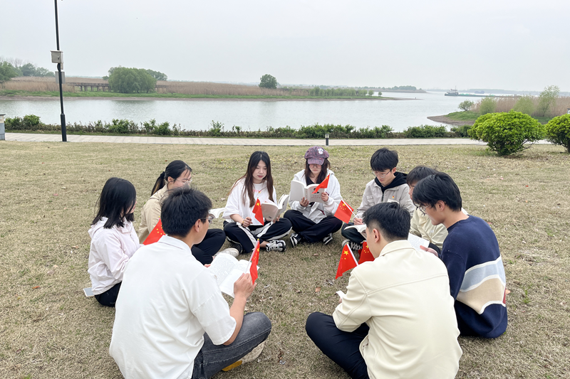 随后,大家沿着美丽的沿江步道,来到薛家洼生态园,在这里进行了一场别开生面的草地思政课,大家围坐一圈,由刘在春对习近平生态文明思想的理论依据、核心要义、基本内容、实践要求进行了讲述。