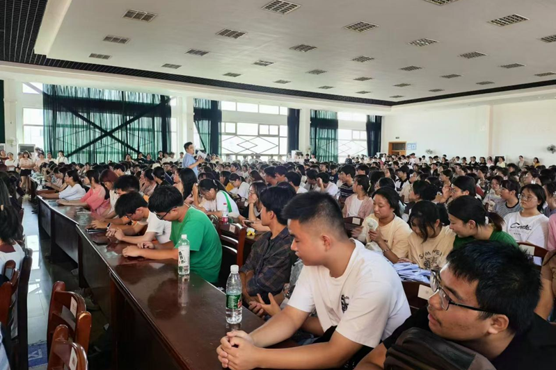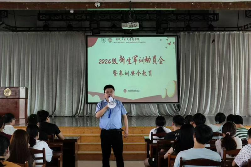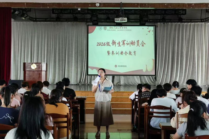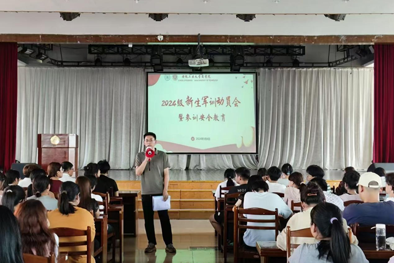 于秀山校区旧大活召开2024级新生军训动员暨参训安全教育会。新生辅导员王伟伟、徐韬,各班班助及全体新生参加会议。会议由院党委副书记、纪委书记、副院长蒋磊主持。