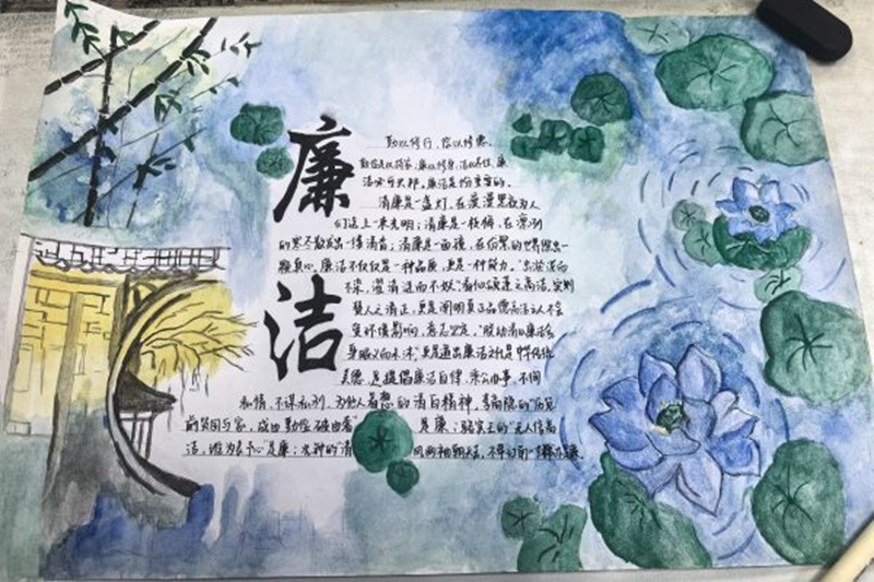 本次活动从线上征集以“廉洁文化”为主题的书法、手抄报、宣传海报等三种形式的作品。在征集的作品中,学生以笔墨传情,书写廉洁之道;用丰富的色彩和生动的画面,融入廉洁文化,让人耳目一新。博彩通