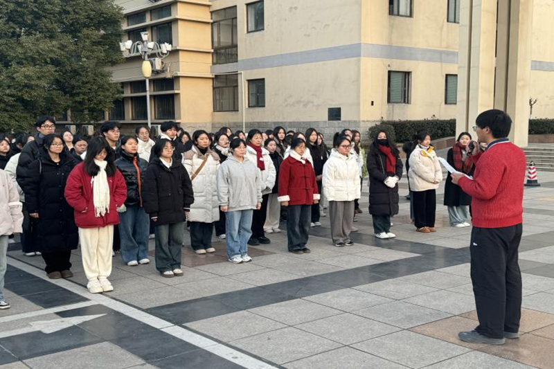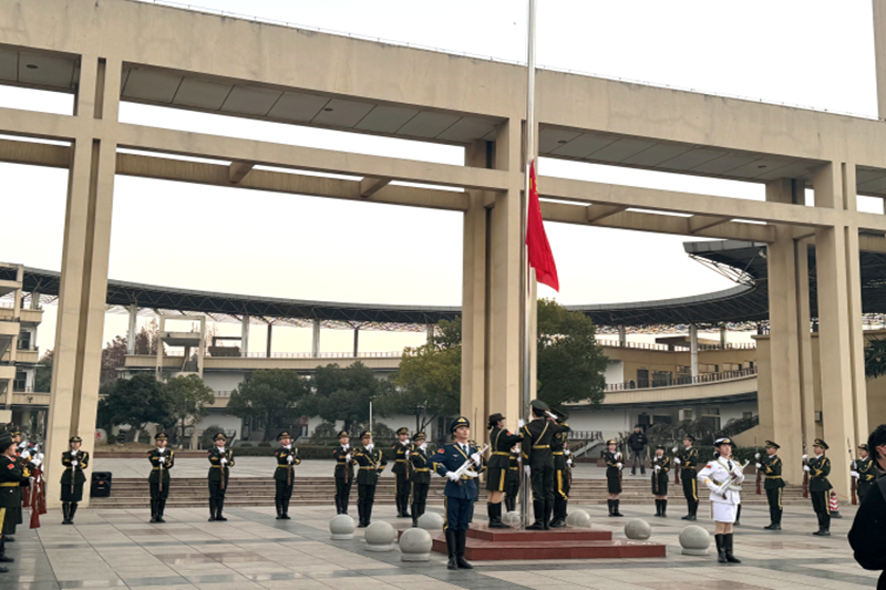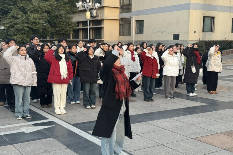 在秀山校区主教学楼广场举行“弘扬爱国志 奋进新征程”元旦主题升旗仪式,校团委和安全保卫部相关负责同志,博彩通