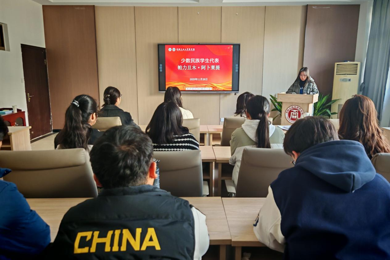 活动在和谐融洽的氛围中拉开帷幕。少数民族学生代表帕力旦木·阿卜莱提和汉族学生代表吴淑雅先后作了发言。他们结合自身在校的学习与生活经历,分享了对于民族团结的理解与感悟,他们的发言真挚动人,展现了博彩通