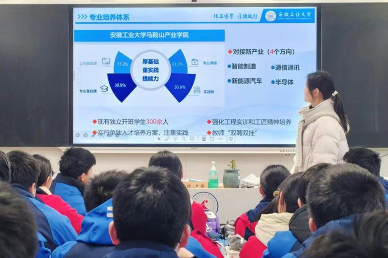 在此次宣讲活动的互动环节,同学们围绕录取分数、选科要求、专业前景与大学生活踊跃提问,分享人结合亲身经历逐一耐心解答,并分享了备考技巧与志愿填报经验,鼓励大家明确目标、踏实前行。巢湖一中的老师认为,此次由昔日毕业生以“过来人”身份开展的宣讲真实而亲切,比单纯政策解读更有说服力,不仅让同学们对安工大有了直观了解,也为大家指明了奋斗方向。参与活动的高三学生纷纷表示,通过此次宣讲对未来升学路径更加清晰,也感受到了来自学姐的温暖与鼓舞,接下来将更努力地为梦想拼搏。
