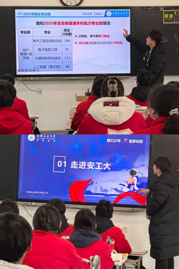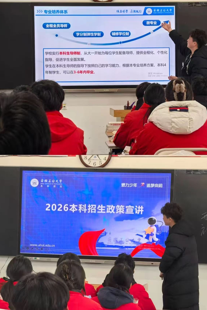 宣讲会伊始,伴随着校园风光短片的播放,主讲人从学科建设、师资力量到人才培养成果,全方位介绍了安工大的办学特色与发展活力。