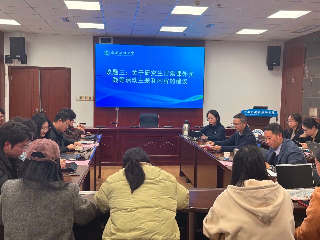 党委书记冯卫东,副院长吕朝凤,党委副书记、纪委书记史雪聃及辅导员肖霄、徐跃辉,教学秘书罗侃、方彬等教师代表出席本次会议。全院各硕博班级学生代表参加座谈交流,研究生会王佳馨同学主持会议。